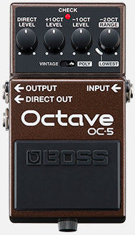 Fusing classic BOSS octave tones with the latest tracking technologies, the BOSS OC-5 sets a new standard in octave pedal performance. Vintage mode provides a spot-on recreation of the legendary mono OC-2 from 1982, while Poly mode offers numerous enhancements for extended-range playing. And with the addition of an octave-up feature, a span of three octaves is now available for creative exploration. From fat, low mono sounds to octave-shifted chords and more, the OC-5 delivers the widest range, finest sound quality, and best playability in any octave stomp to date.